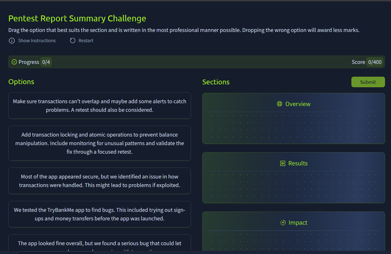 This room provided invaluable insights into professional pentest report writing. The key takeaways include understanding your audience, structuring information logically, maintaining professional standards, and ensuring that technical findings translate into actionable business intelligence.